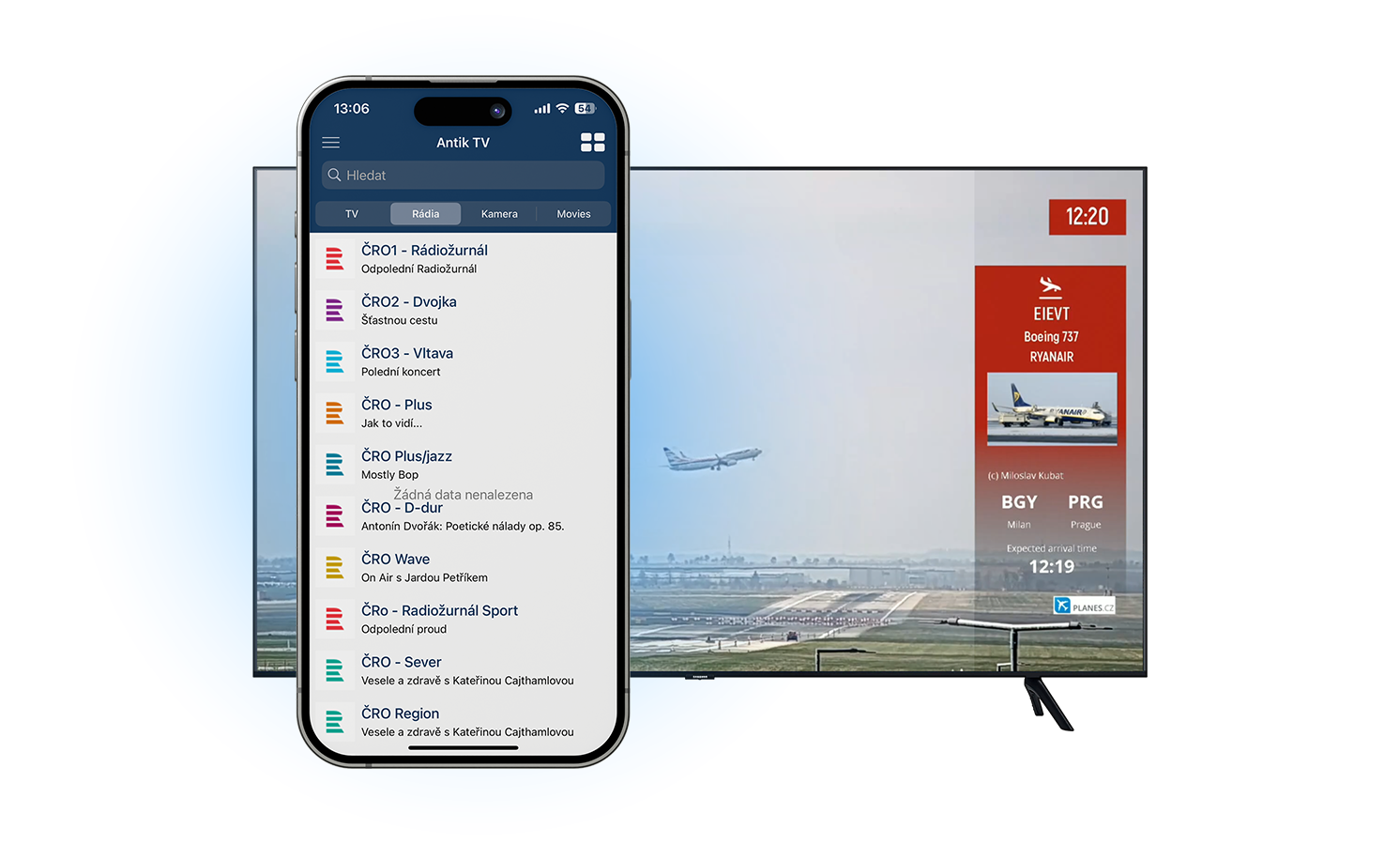 Stáhnete si bezplatnou aplikaci Antik TV do svého mobilu/tabletu. Sledovat Antik TV je možné také přes webový prohlížeč na WEBTV.TV/CZ.
